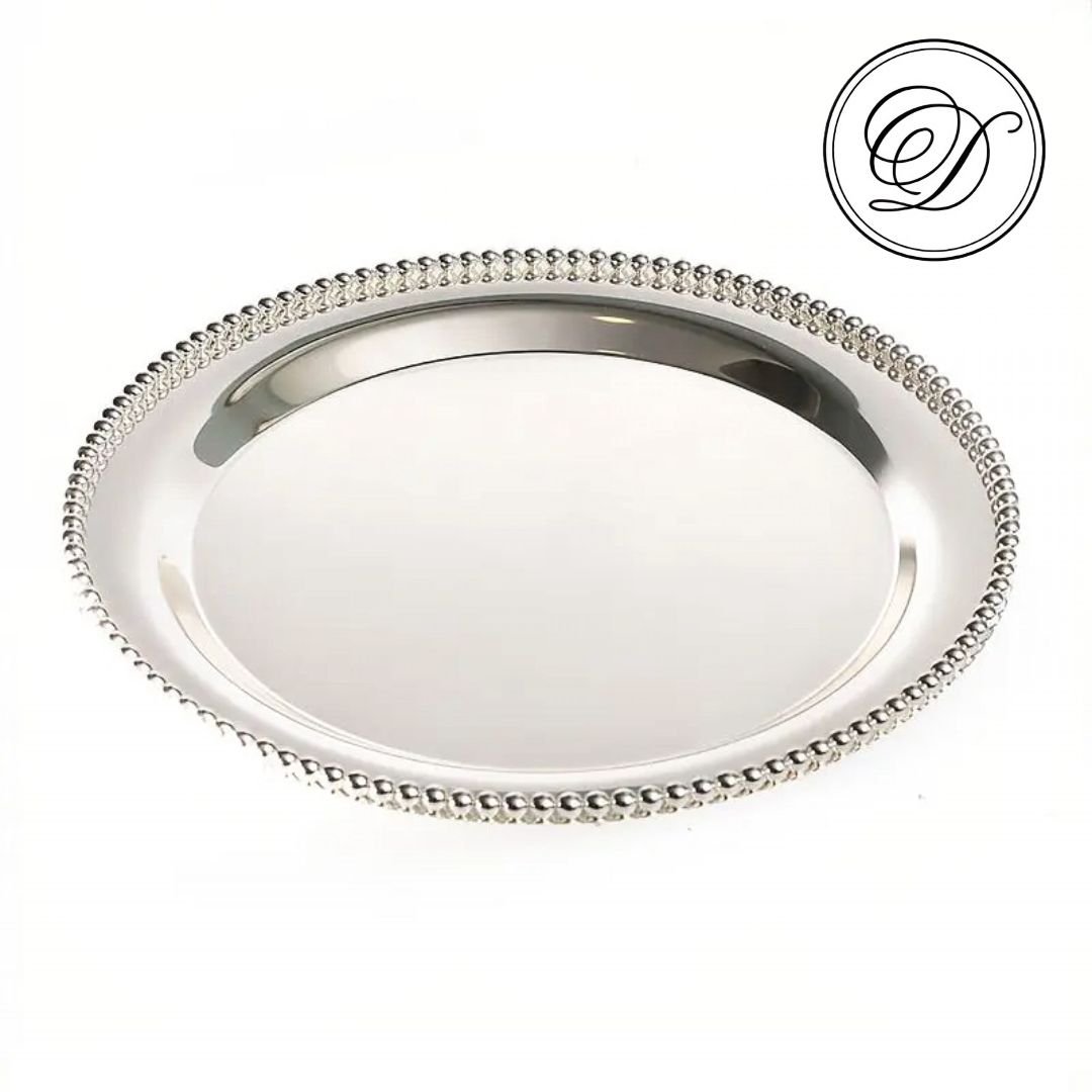 מגש עגול ציפוי כסף חרוזים 32 ס'מ