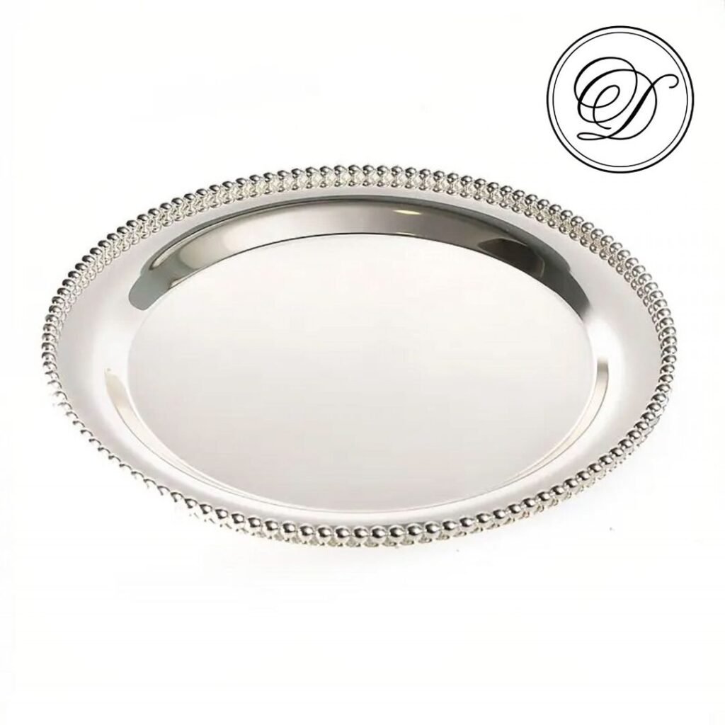 מגש עגול ציפוי כסף חרוזים 32 ס'מ