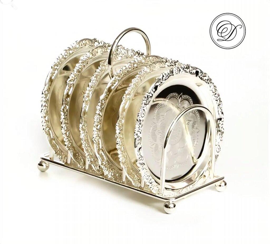סט 6 תחתיות לכוסות על מעמד ציפוי כסף